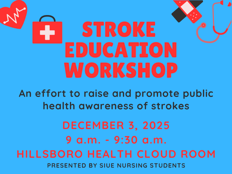 SIUE Nursing students are actively completing their public health clinicals at Hillsboro Health. As they see the need for public stroke education, they have volunteered to provide a free public education workshop to community members. The subject will be on stroke, including some of the signs and symptoms.
