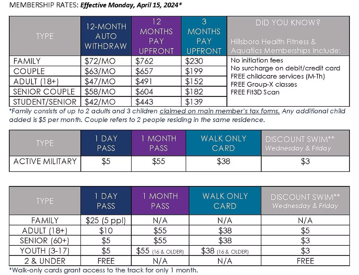 *Please note: Insurance and step-down memberships do not receive member pricing on Fitness & Aquatics services.